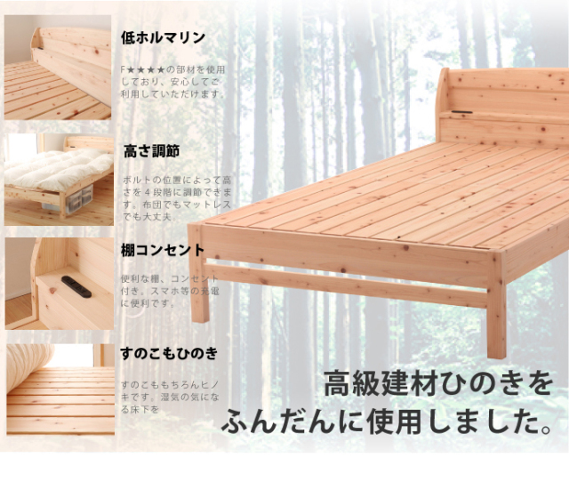 源ベッドのベッドフレームは、檜(ひのき)を使用した日本製の高品質な製品が多く揃っています。