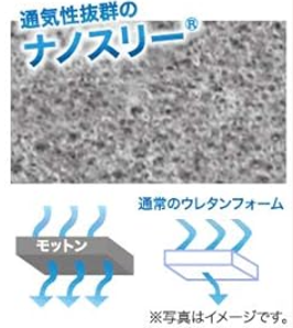 | 構造 | ![]() 構造:1枚もの 平形 ・復元率:96% •高反発ウレタン素材 体圧分散性や通気性が良いとされるは通気性が抜群、冬は暖かさをキープ | ![]() 高い耐久性を目的とし高密度ウレタン採用、密度を20%向上させました 反発弾性:66%の高弾性ウレタンを採用。 高い弾力性で寝心地の良さと、自然な寝返りをサポート |